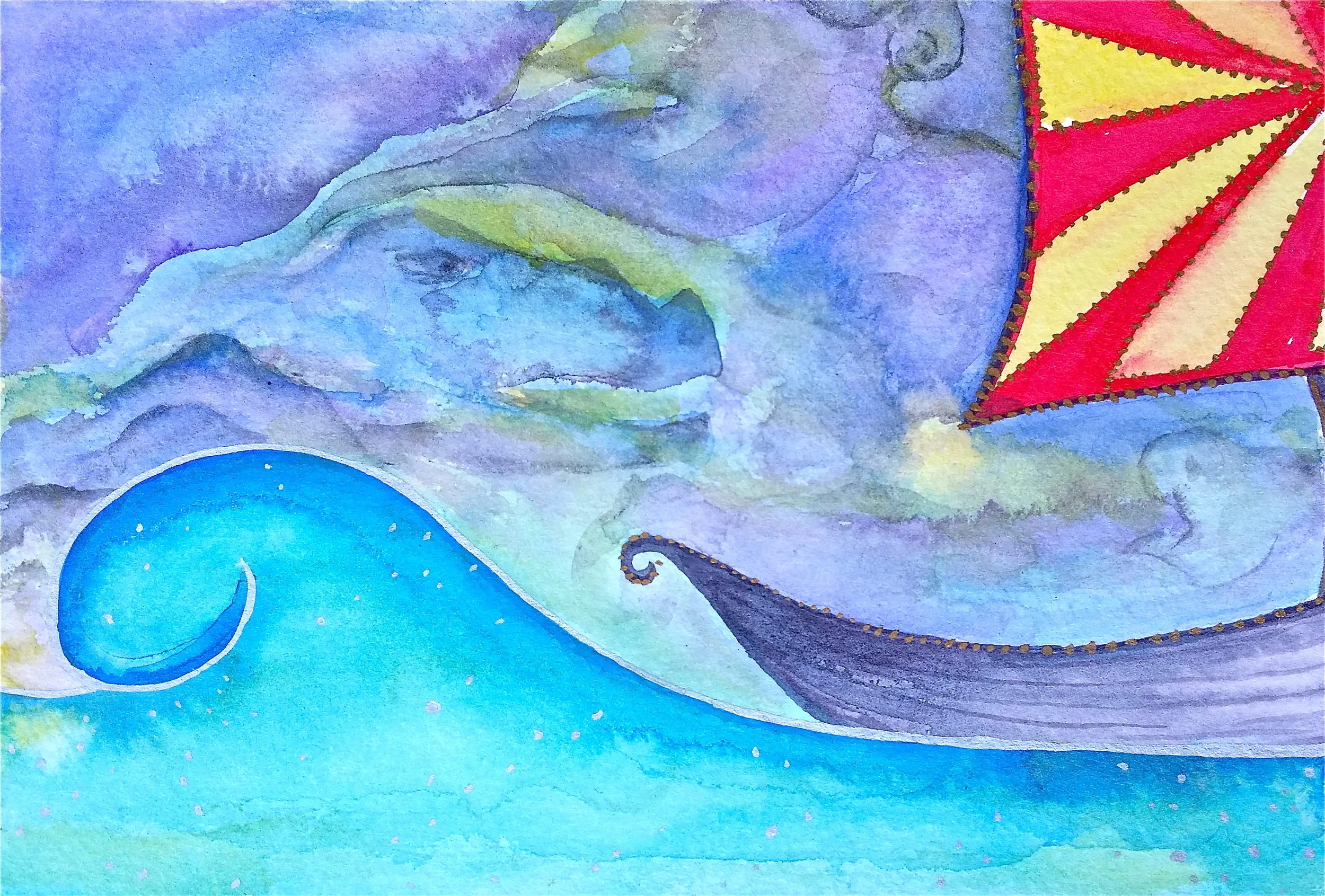 India ink and watercolor on paper. 8" x 5 1/2".