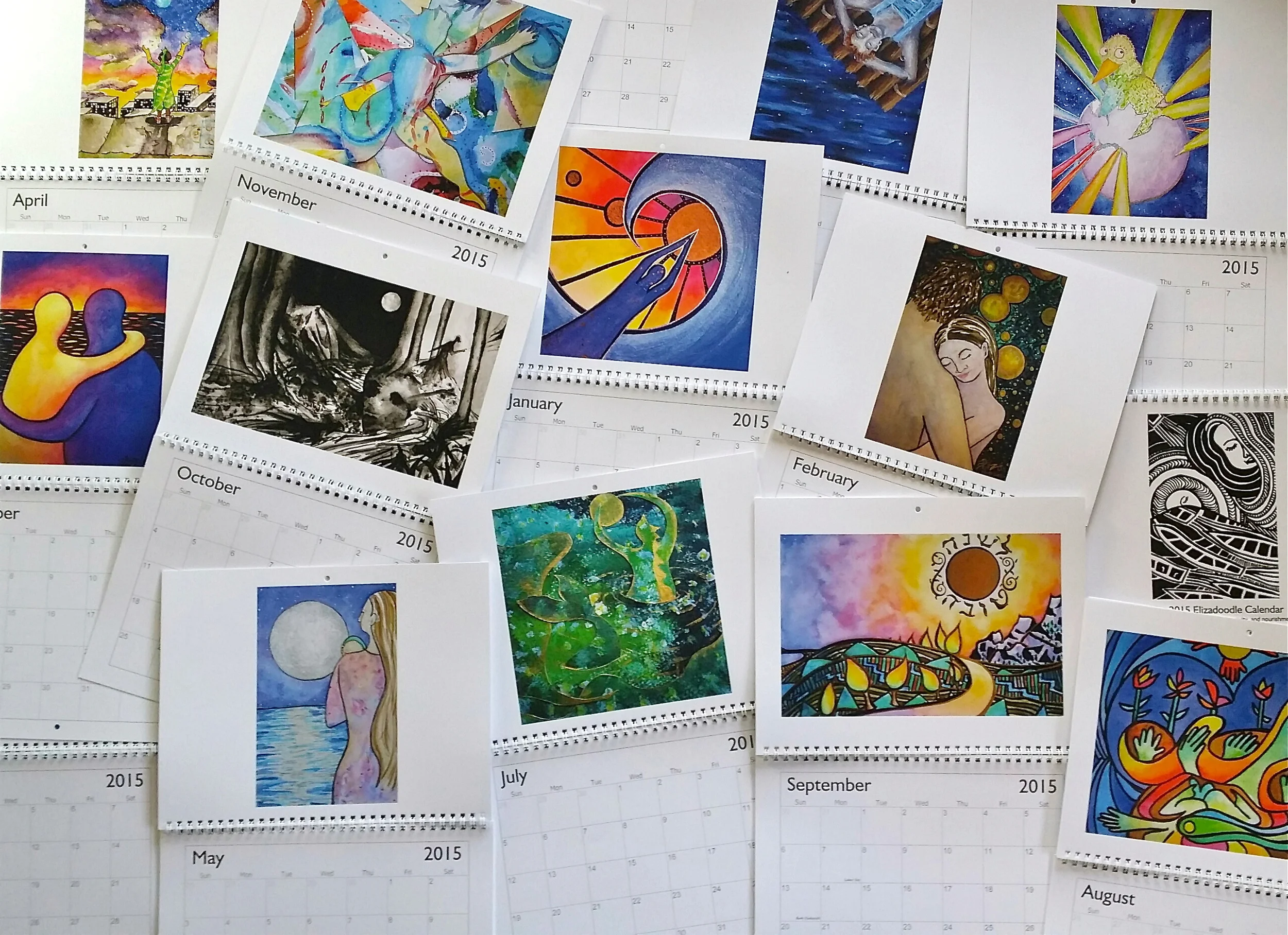 For the 2015 Elizadoodle Calendar, I’ve chosen 12 of my favorite doodles that suit the given months. Each calendar is signed by me, and I would love to make it out to you, or to whomever you are gifting it to.