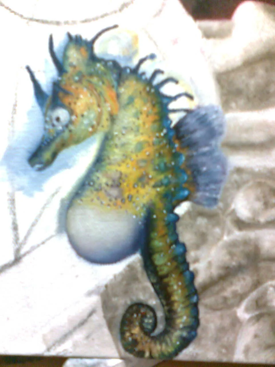 Partially painted for my friend, Aubrey, who loves seahorses.