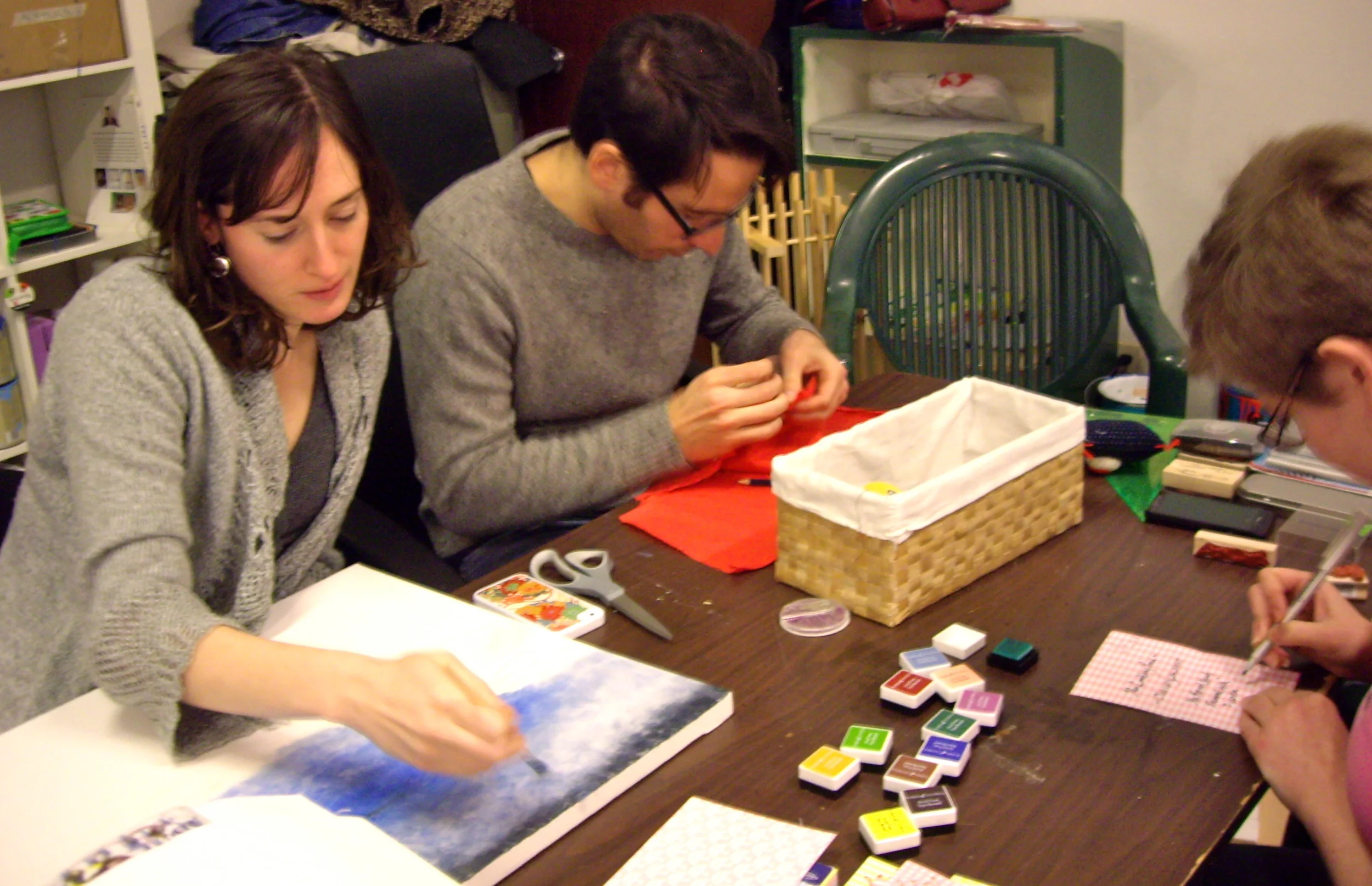 Before every studio day, I slightly question my sanity, and yet, with Scrap Angel watching over the day, it always seems to work out. Yesterday, we had eight people, age 10-67, painting, collaging, sewing, drawing, designing, doing calligraphy, and making stained glass art! Thank you, Scrap Angel, and thank you yesterday's fearless artists. I hope to see you all again soon!