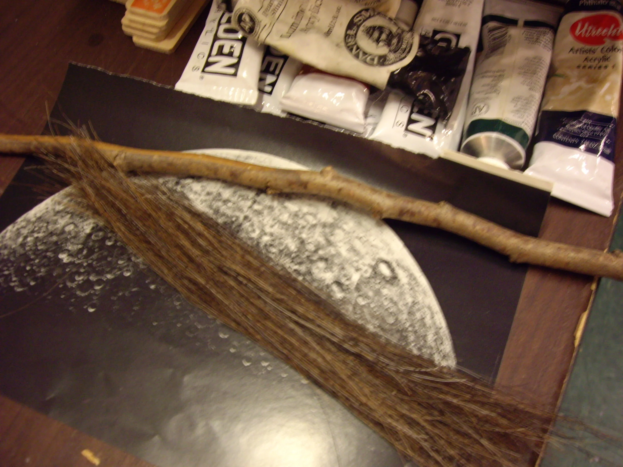The scraps forming Scrap Angel came from an afternoon in Tucson over a year ago, when I took my friend, Tara, to the art store to get her some watercolors. We messed around with them on a sheet of paper, using a relief, some iridescent colors, and some glazing, and I ended up with the sheet of paper we used.